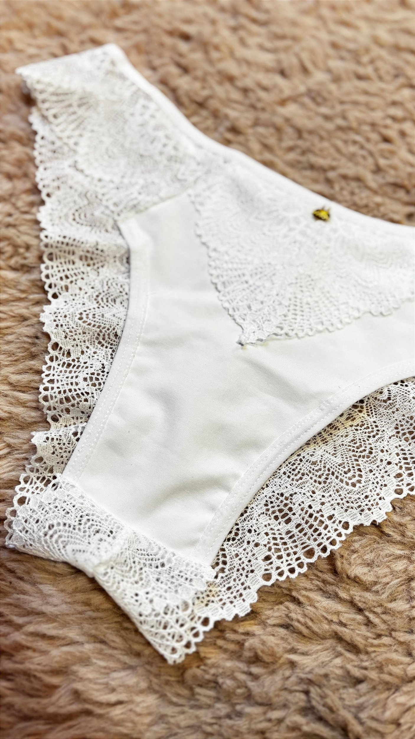 A Calcinha Biquini Rendada Alice em microfibra e renda de toque super macio.