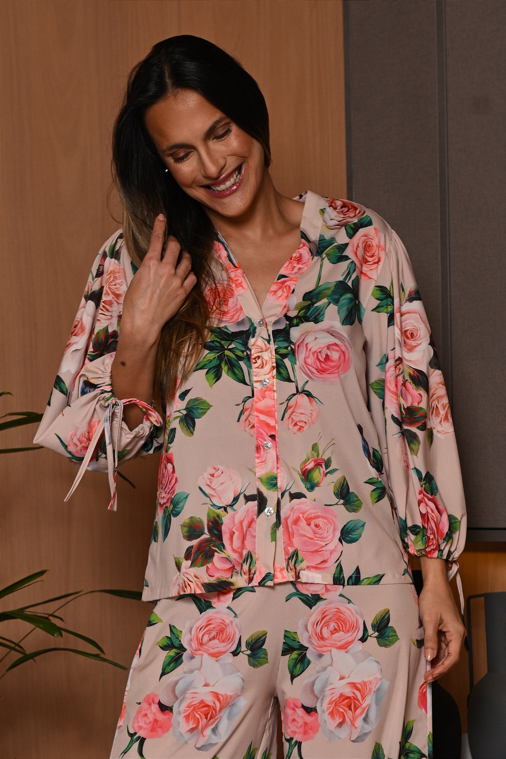 O Conjunto com Blusa de Botões e manfa Bufante Dara faz parte da nossa nova coleção Loungewear.